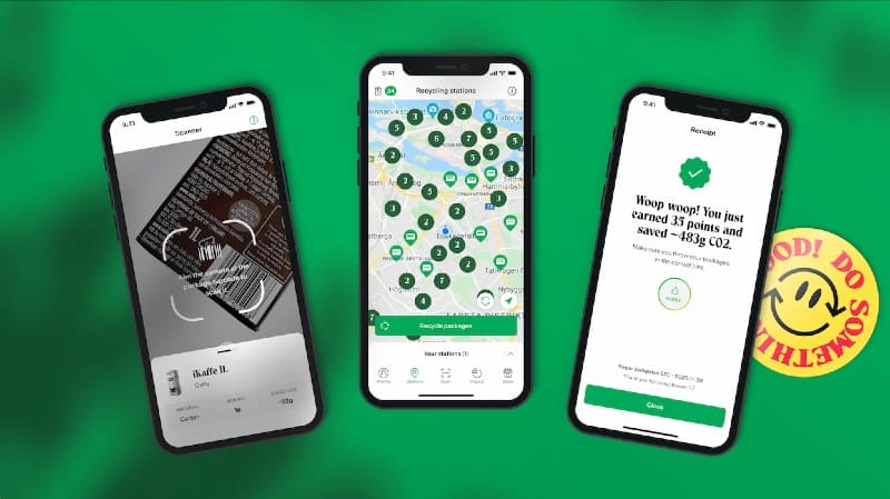 Väl vid återvinningsstationen blir du ombedd att bekräfta att du är där och att du har tagit med dina förpackningar. När du har gjort det och kastat dina förpackningar i rätt behållare får du pantvärdet för allt du har skannat hemma.